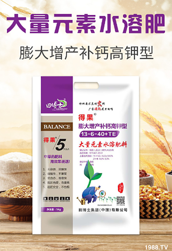 田博士集團有限公司【膨大增產(chǎn)補鈣高鉀型大量元素水溶肥料13-6-40+TE-得果】優(yōu)勢